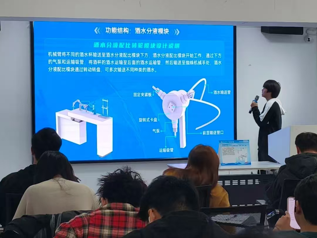 医学报告厅内300余名师生齐聚,见证9件实体作品亮相。作品覆盖智能装备、绿色制造等关键领域。“太阳能混动空气加湿小车”将太阳能技术成功应用于移动加湿场景,在技术创新与实用价值方面均获得评委一致认可。